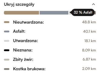 Na trasie 3 brody, z czego 2 płytkie, bardziej kałuże, ale jeden głęboki dlatego dodaję propozycję objazdu. Jest też przejazd przez wąski tunel, na końcu którego są stare schody, nie próbowałem przejazdu, bo byłem sam, alternatywnie jest podjazd który kończy się na torach, więc ostrożnie. Jechałem 2.11.2025 i jedna z dróg przy cmentarzu była jednokierunkowa, ale w normalne dni wszystko powinno być przejezdne.