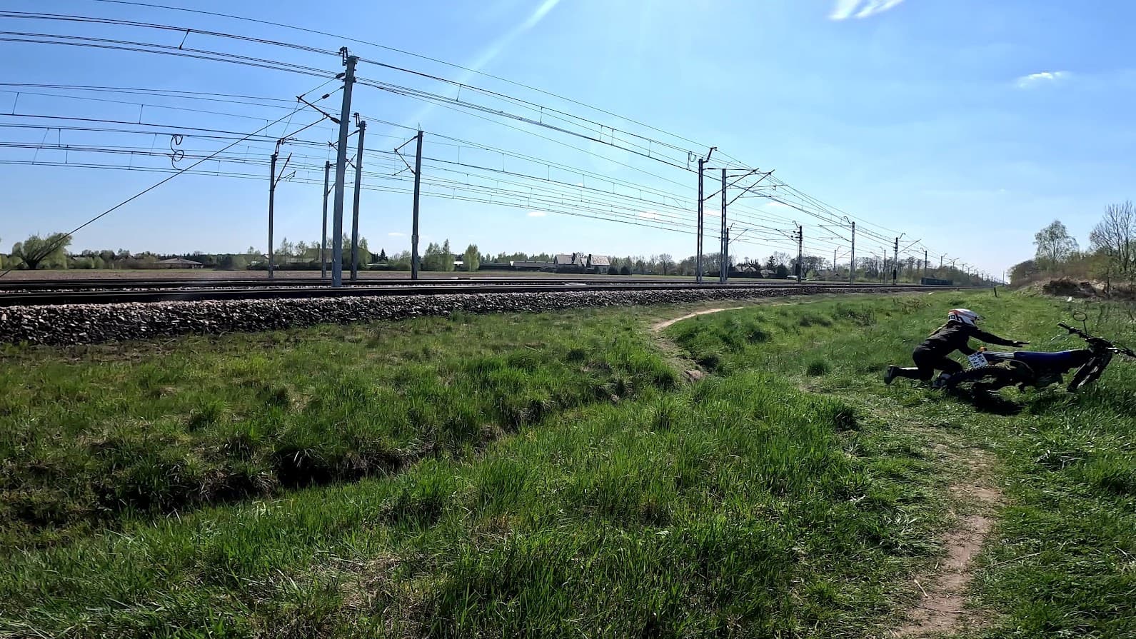 Wiedzie przez pola, wzdłuż torów pkp, trochę szuwary, trochę błotniście i trochę ajcwald.