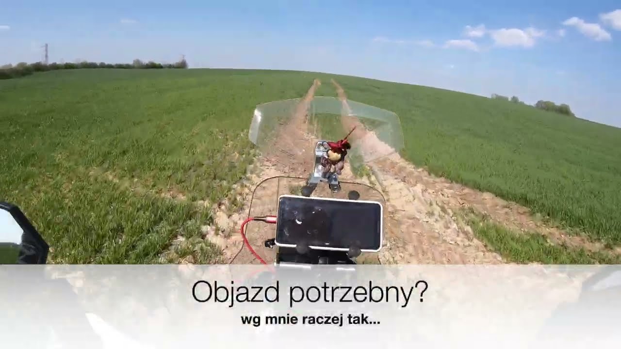 niebieska linia to propozycja do sprawdzenia, czerwona linia to nasz objazd, ale wg mnie mimo wszystko pojechaliśmy przez czyjeś pole i mimo śladu po traktorze, warto zrobić objazd, żeby tam nikt nie naruszał prywatnego pola.