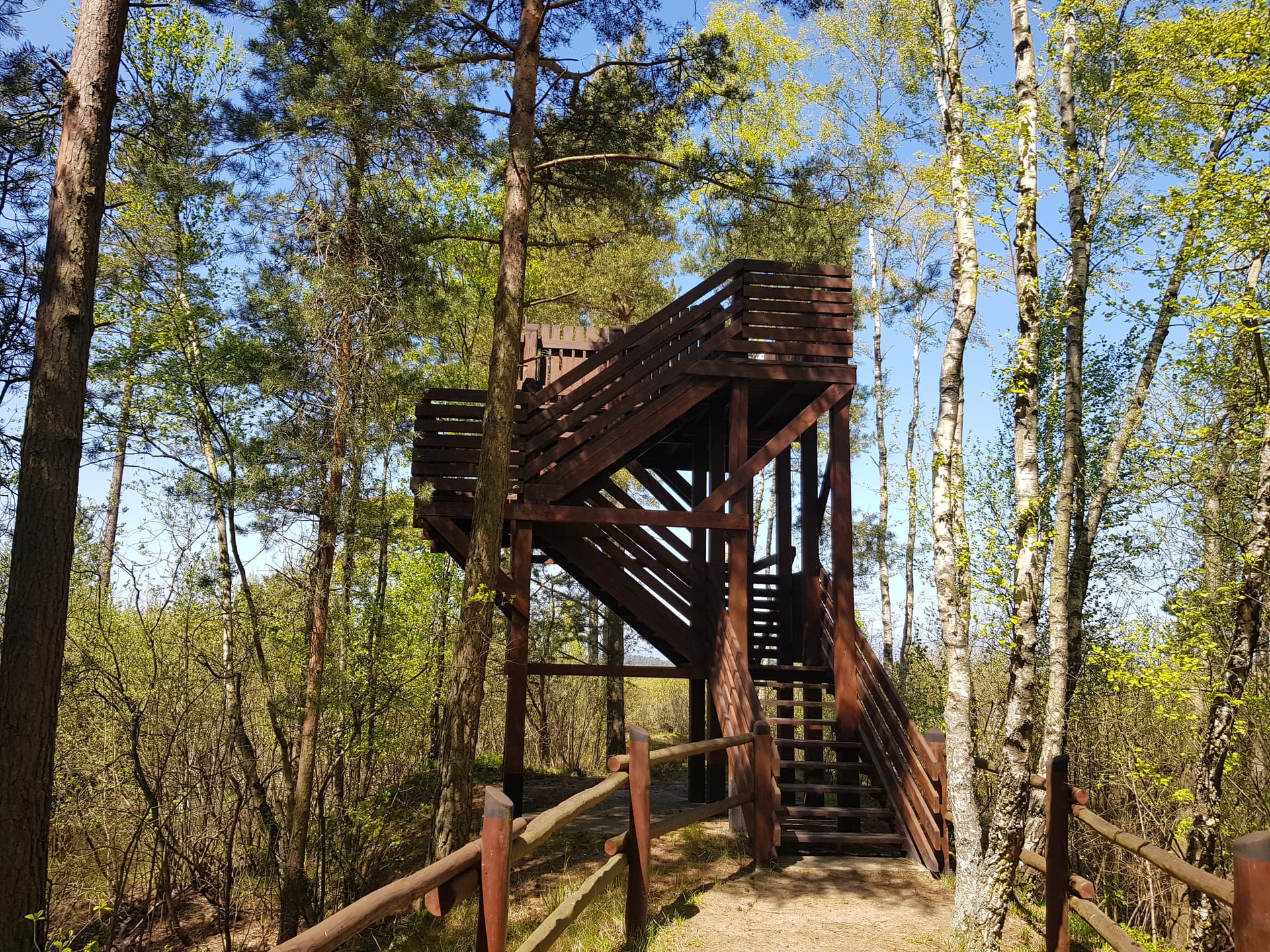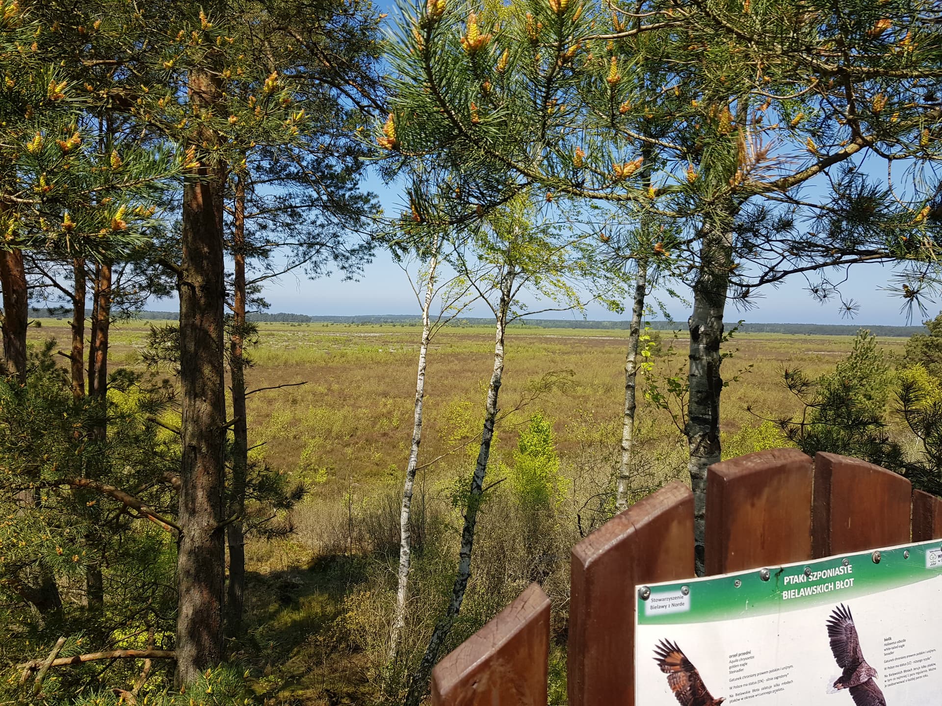 Warto zatrzymać się tu przy Rezerwacie Bielawa – na już trochę zarośniętej wieży widokowej można wypatrzyć liczne gatunki ptaków.