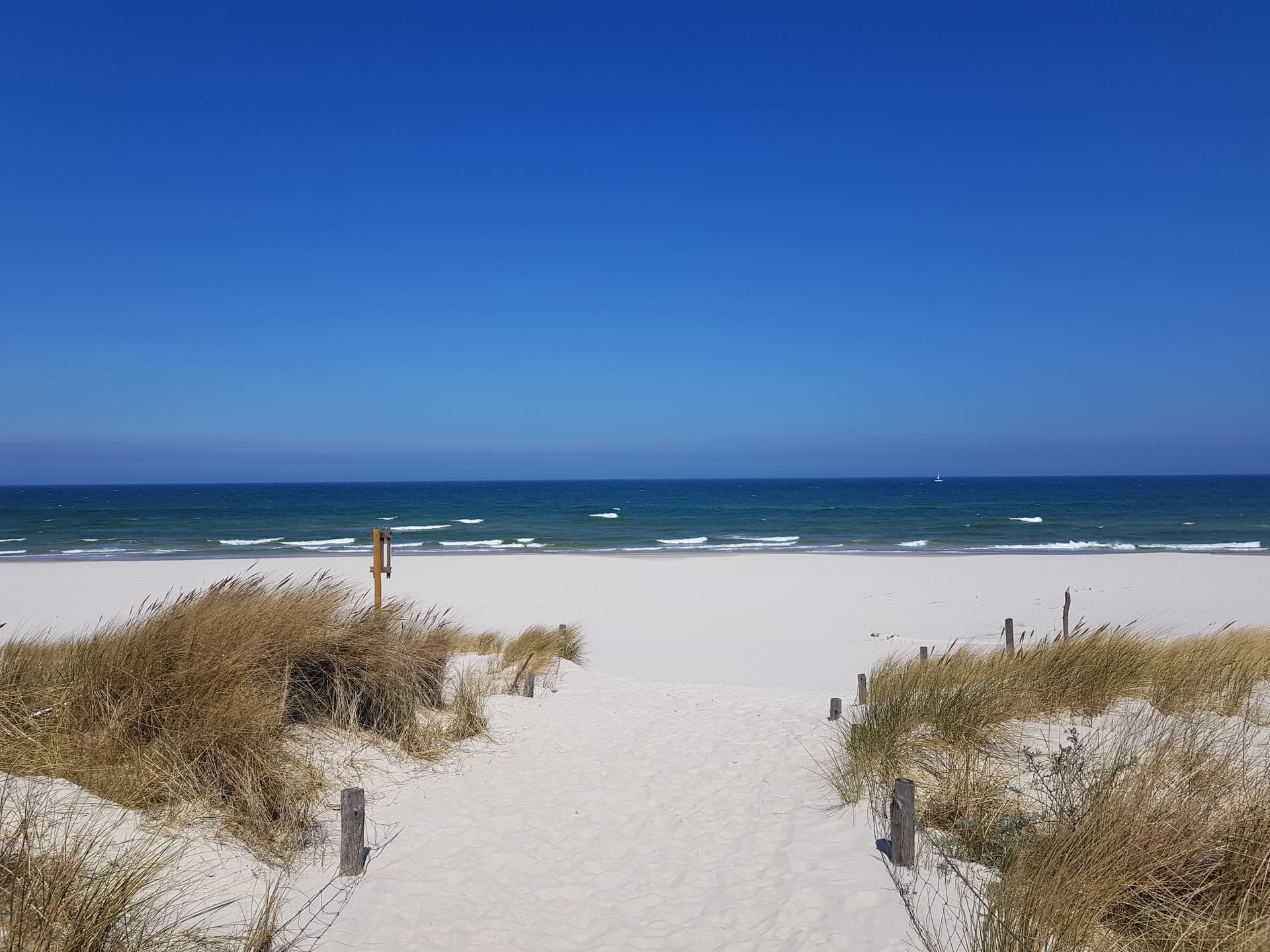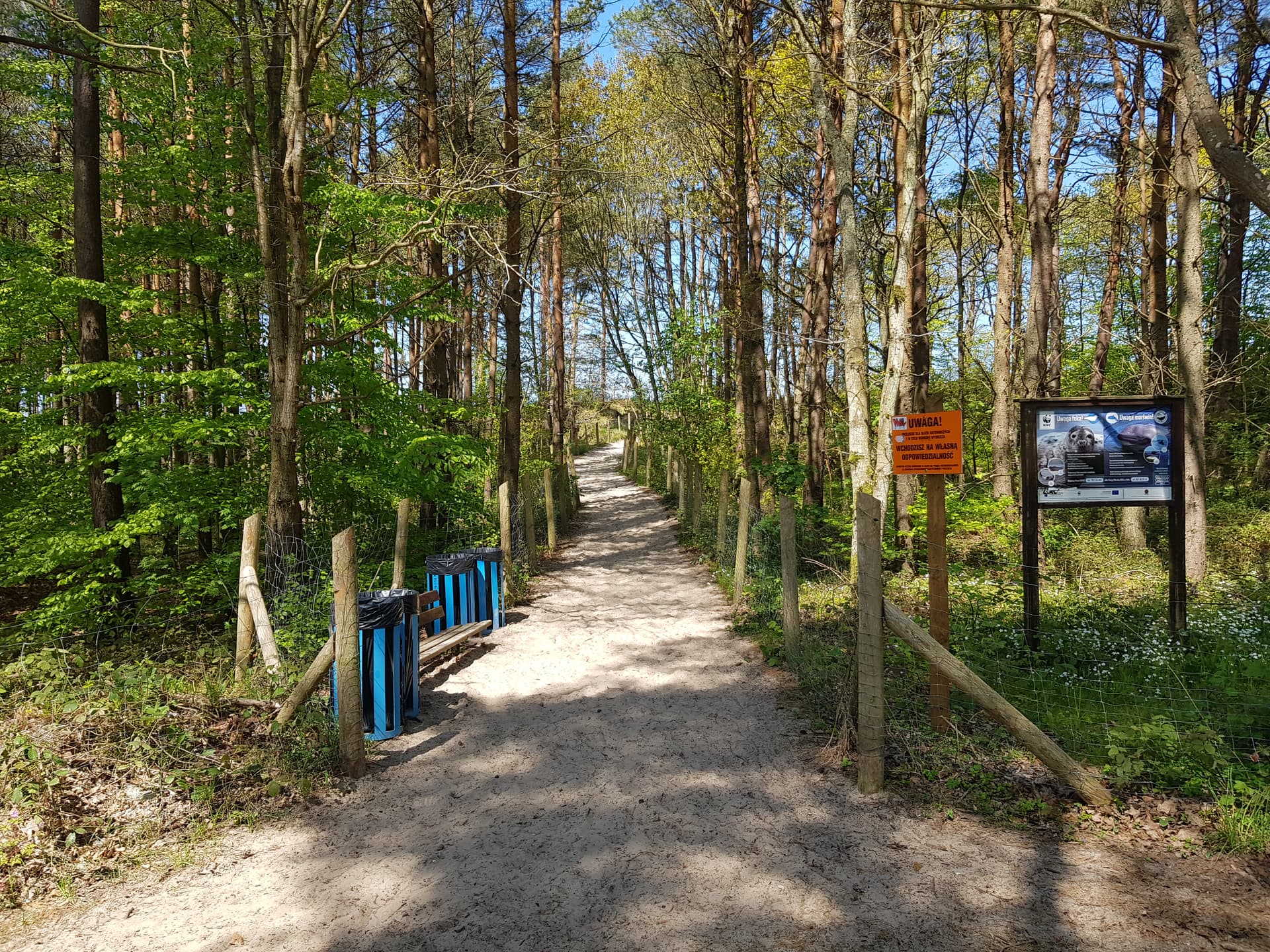 Dalej zbliżamy się do Karwi – choć miejscowość tylko muskamy, nic nie stoi na przeszkodzie, by odbić na pyszną rybkę. Na kolejnym odcinku, przez ok. 4 km, mijamy po prawej stronie liczne wejścia na plażę – do linii brzegowej jest stąd zaledwie 80 metrów. Latem niestety bywa tu spory ruch, ale to jedyne takie miejsce w okolicy, gdzie można dojechać szutrem tak blisko plaży.