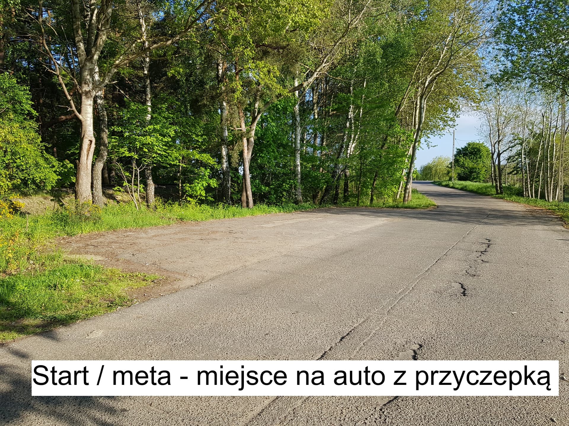 Start i meta w Dębogórzu z miejscem dla osób chcących dowieźć moto na przyczepce.