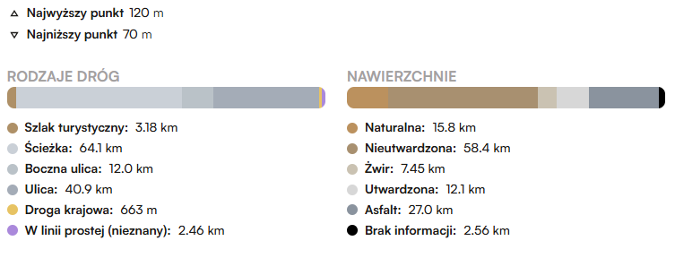 Czas przejazdu około 4h w sprawnym tempie, 5h na spokojnie z przerwami.