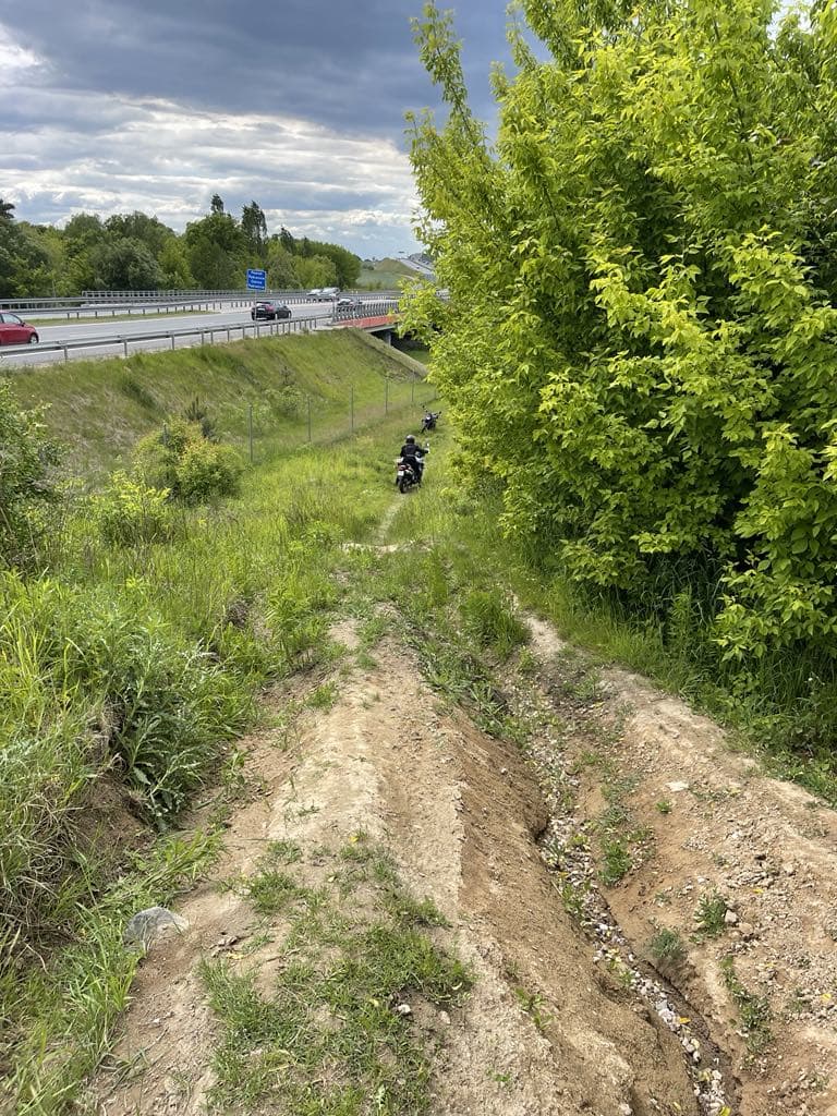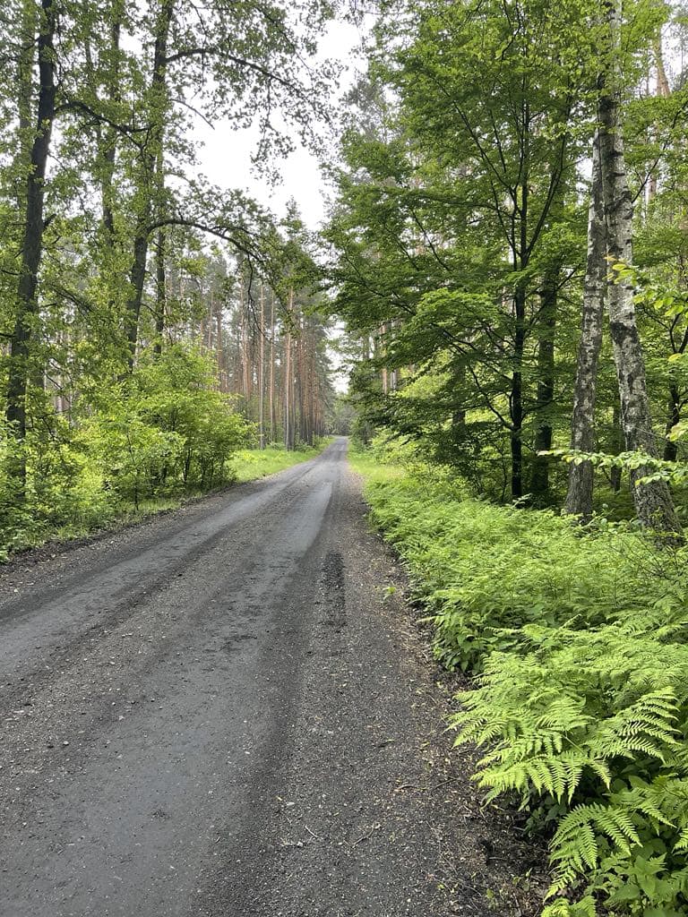 Podjazd (uwaga na wystające pnie oraz rów po prawej stronie)