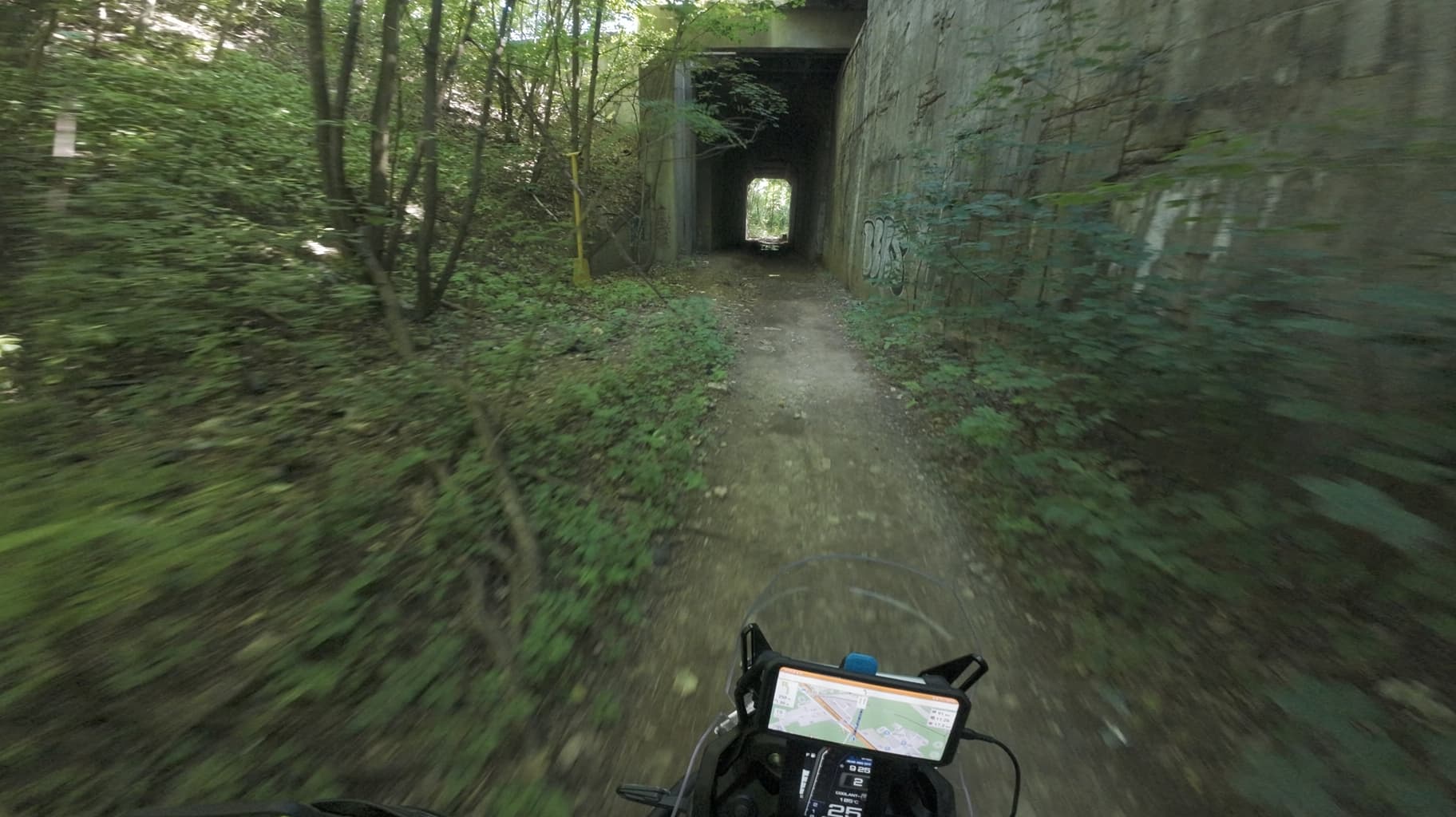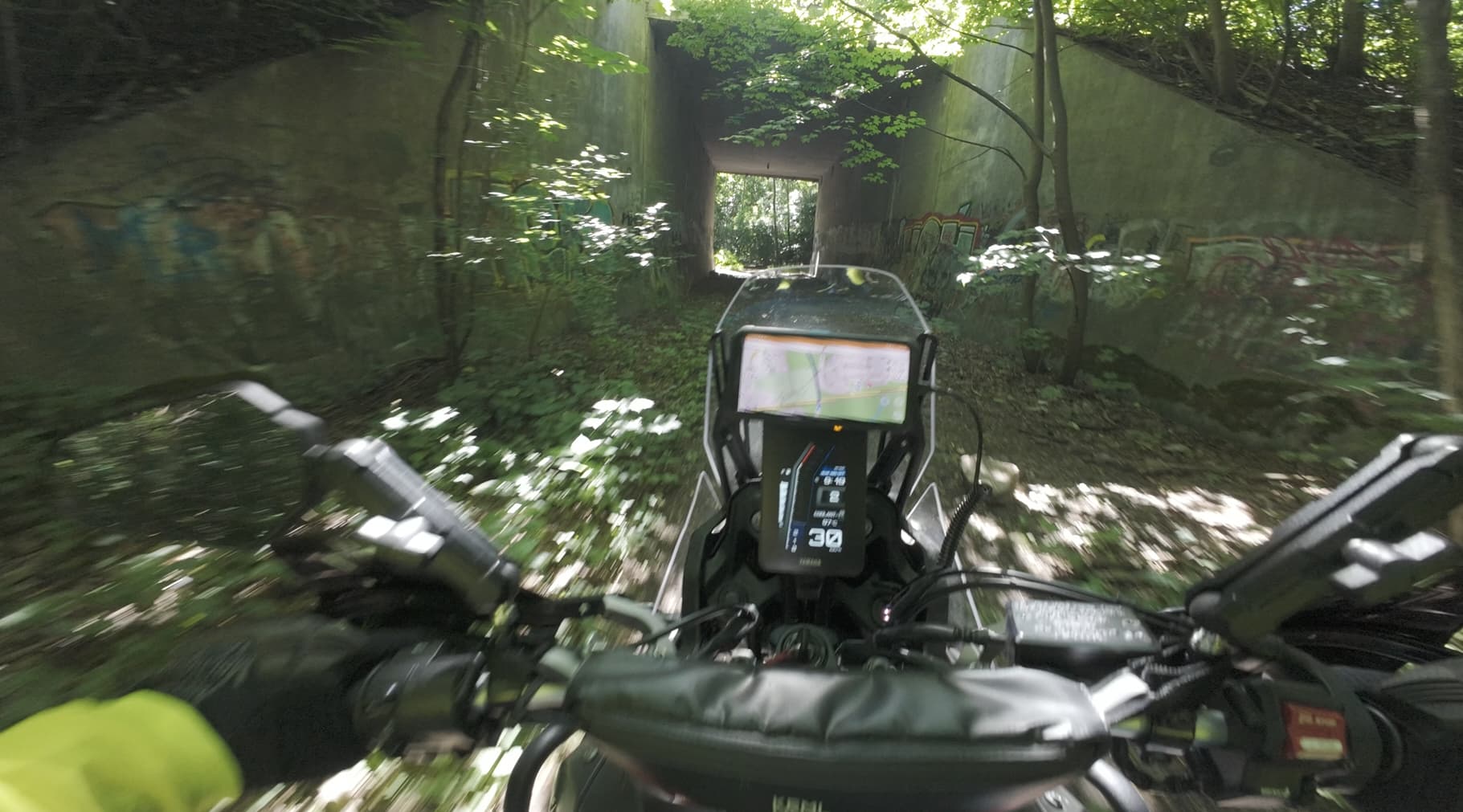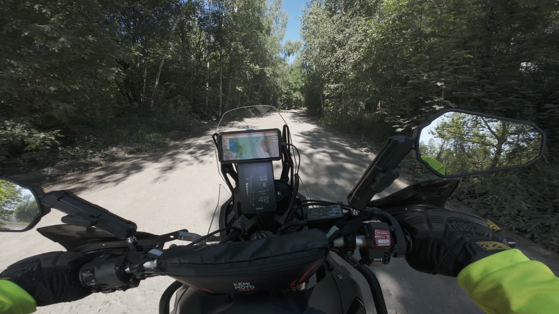 Po drodze są też przeloty przez lasy – prowadzi drogą przez las udostępnioną do ruchu publicznego, ale nadal jest trochę tej klimatycznej jazdy między drzewami.