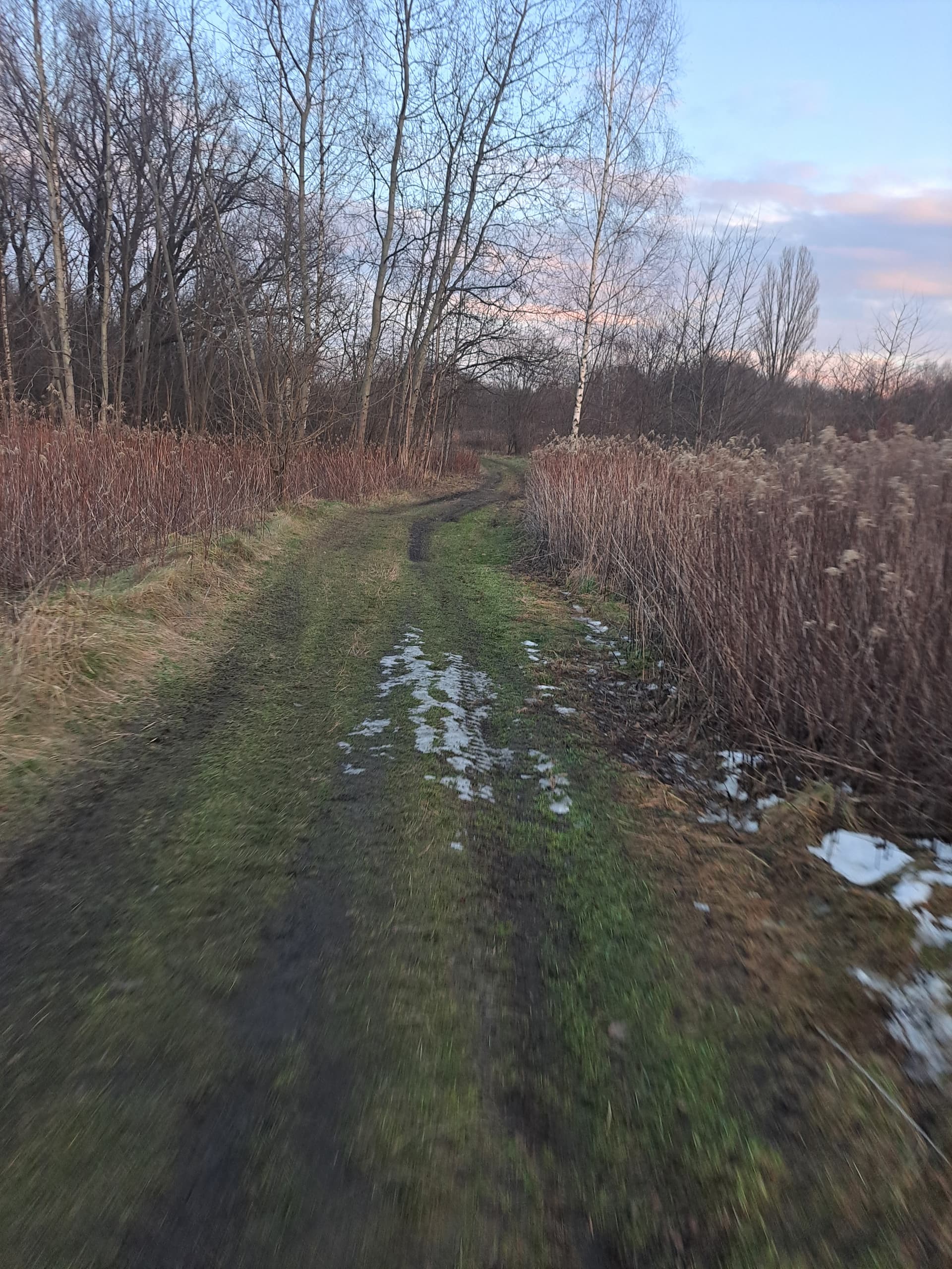 Wyjeżdżamy przy oczyszczalni ścieków, po czym wjeżdżamy na nasyp kolejowy zlikwidowanej kolei piaskowej.