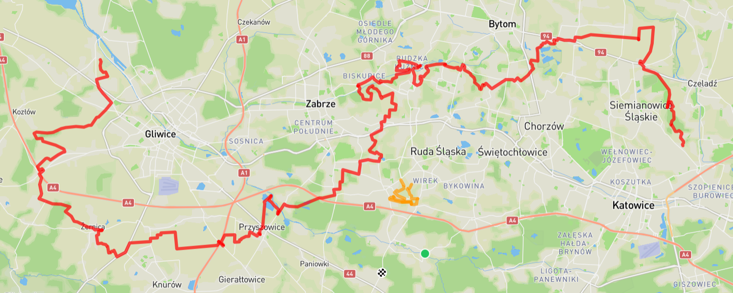 Cześć, mam propozycję trasy. Celem było stworzenie czegoś na linii Katowice - Gliwice. W moim odczuciu trasa jest zróżnicowana, miejscami wymagająca. Trasa zaczyna się w Siemianowicach Śląskich i po wszystkich zmianach i zwiadach ma 93 km i przebiega przez hałdy przy stawie Ajska, tyłami dzielnicy Orzegów Rudy Śląskiej obok Bytomki, nieużytki przy Rudzkiej Kuźnicy, hałdę na Biskupicach. Następnie track prowadzi przez Rudę i Zabrze w okolice rzeki Kłodnicy, a potem dookoła Gliwic na ich zachodnią stronę.