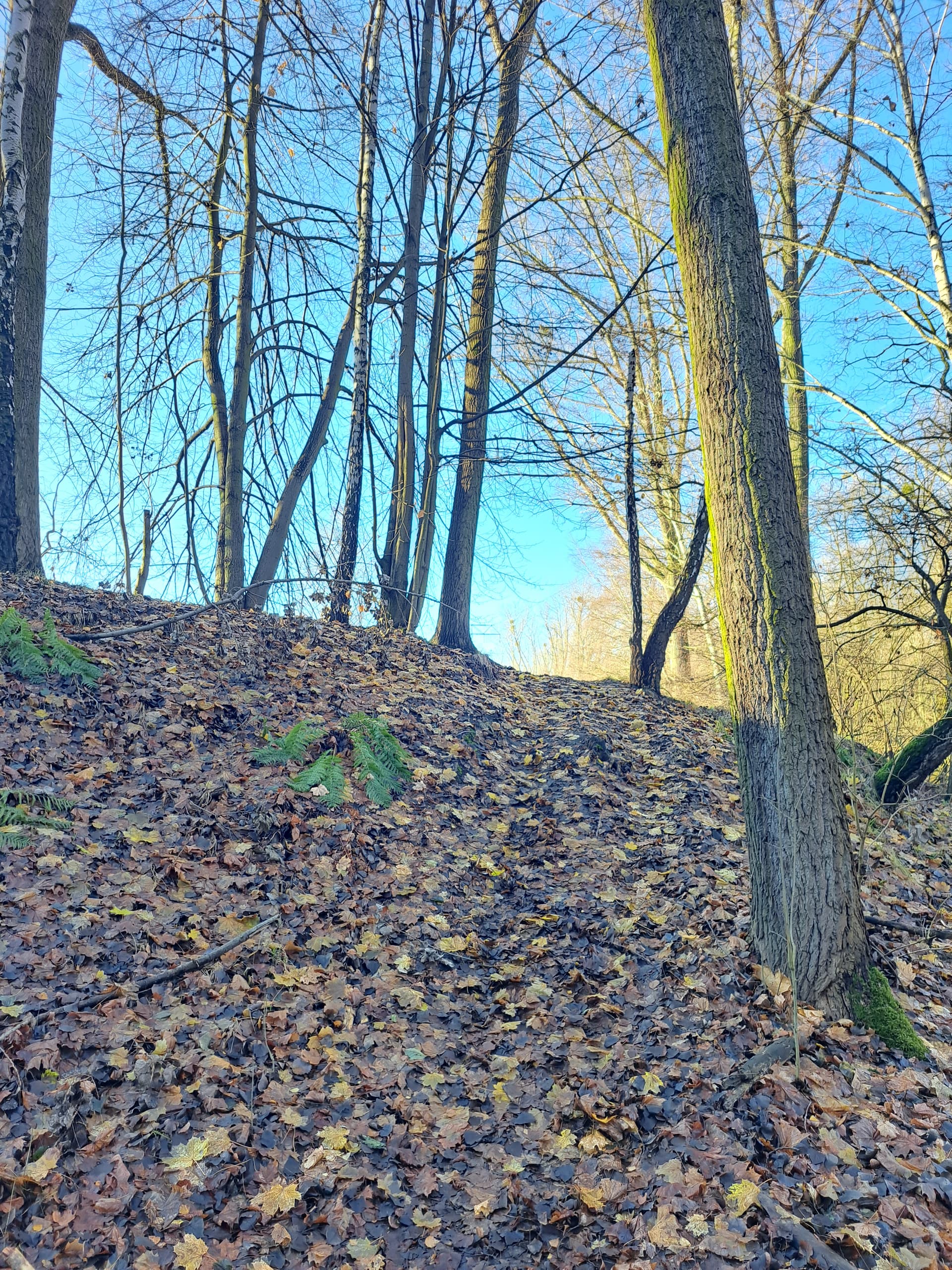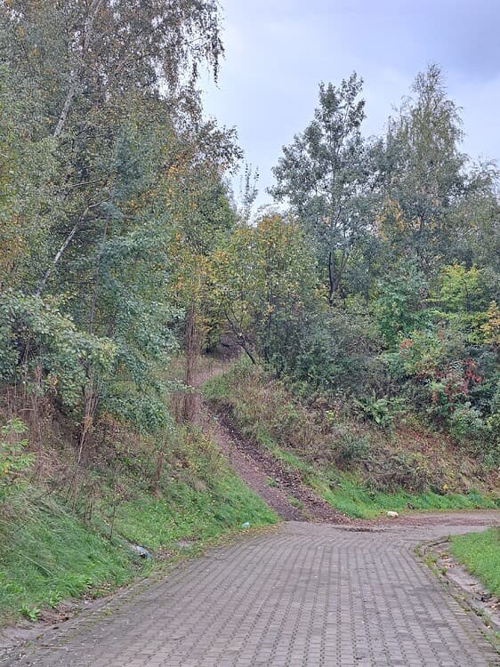 Podjazd, po którym trzymając się prawej strony hałdy wjeżdżamy w teren zalesiony.