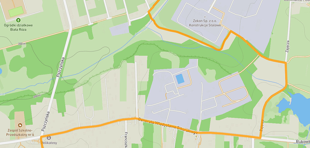 Pierwotnie trasa miała prowadzić przez Park Pileckiego, ale został wytyczony objazd dookoła firmy Zekon.