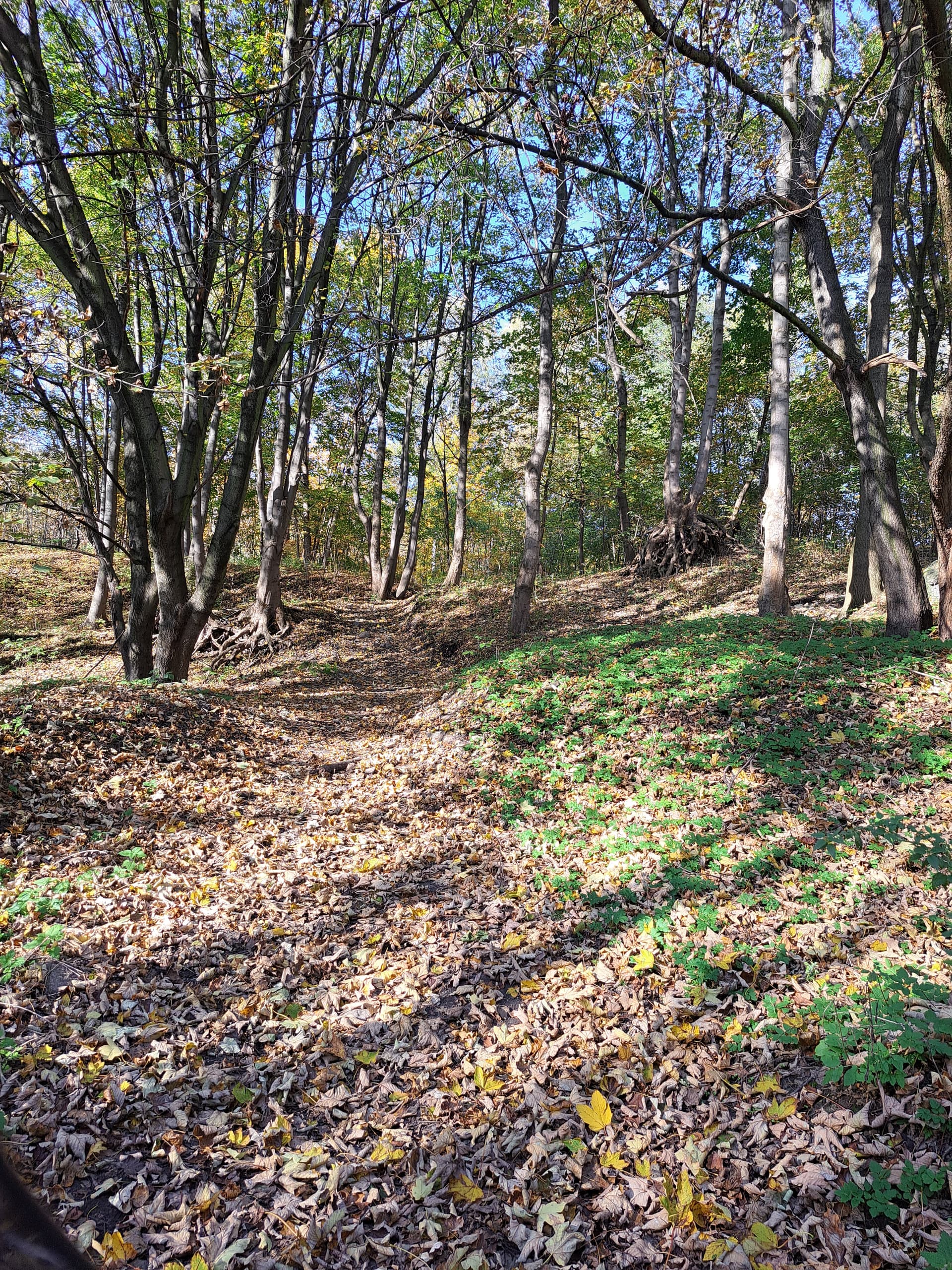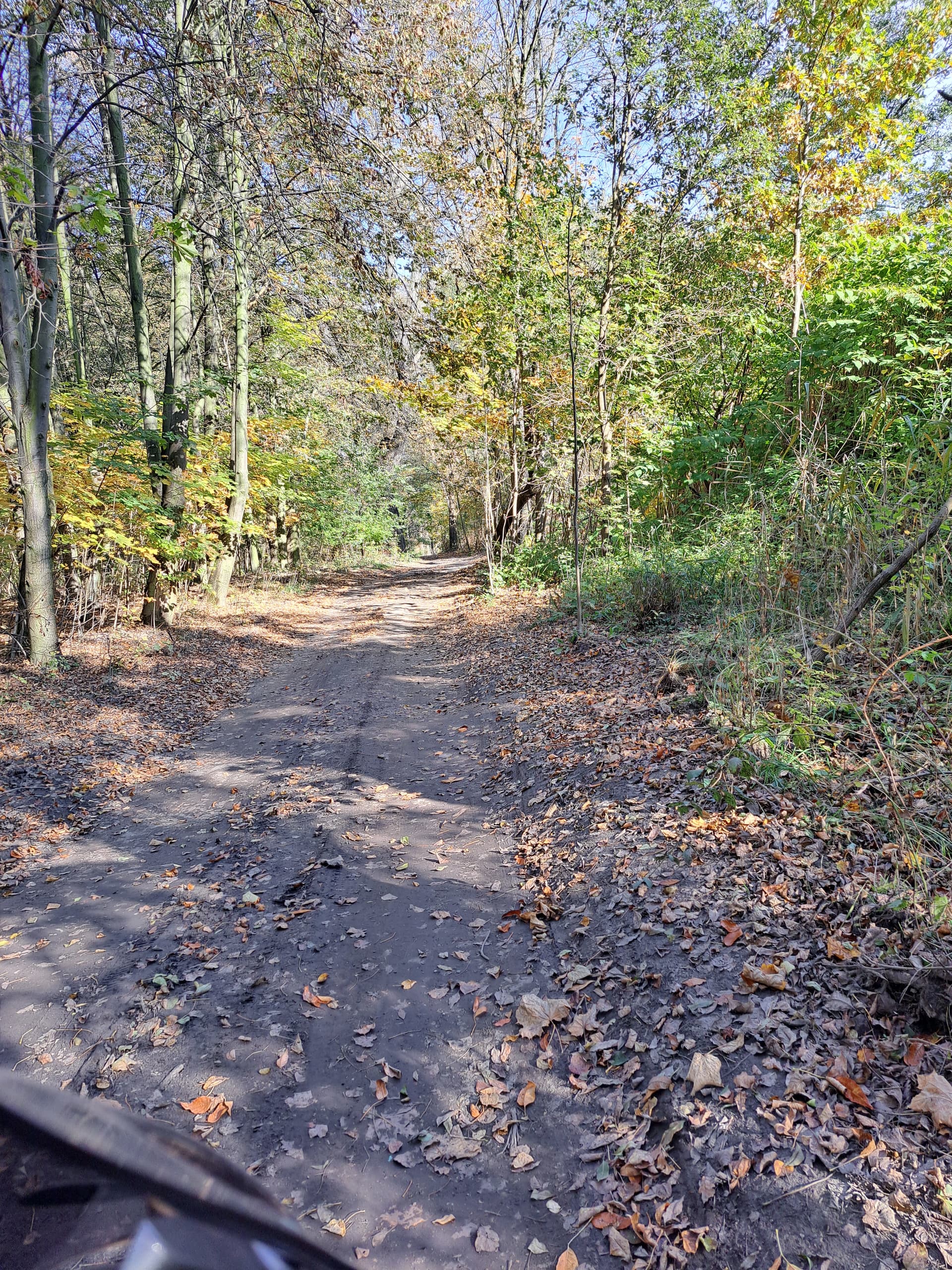Ze wzgórza zjeżdżamy przez las