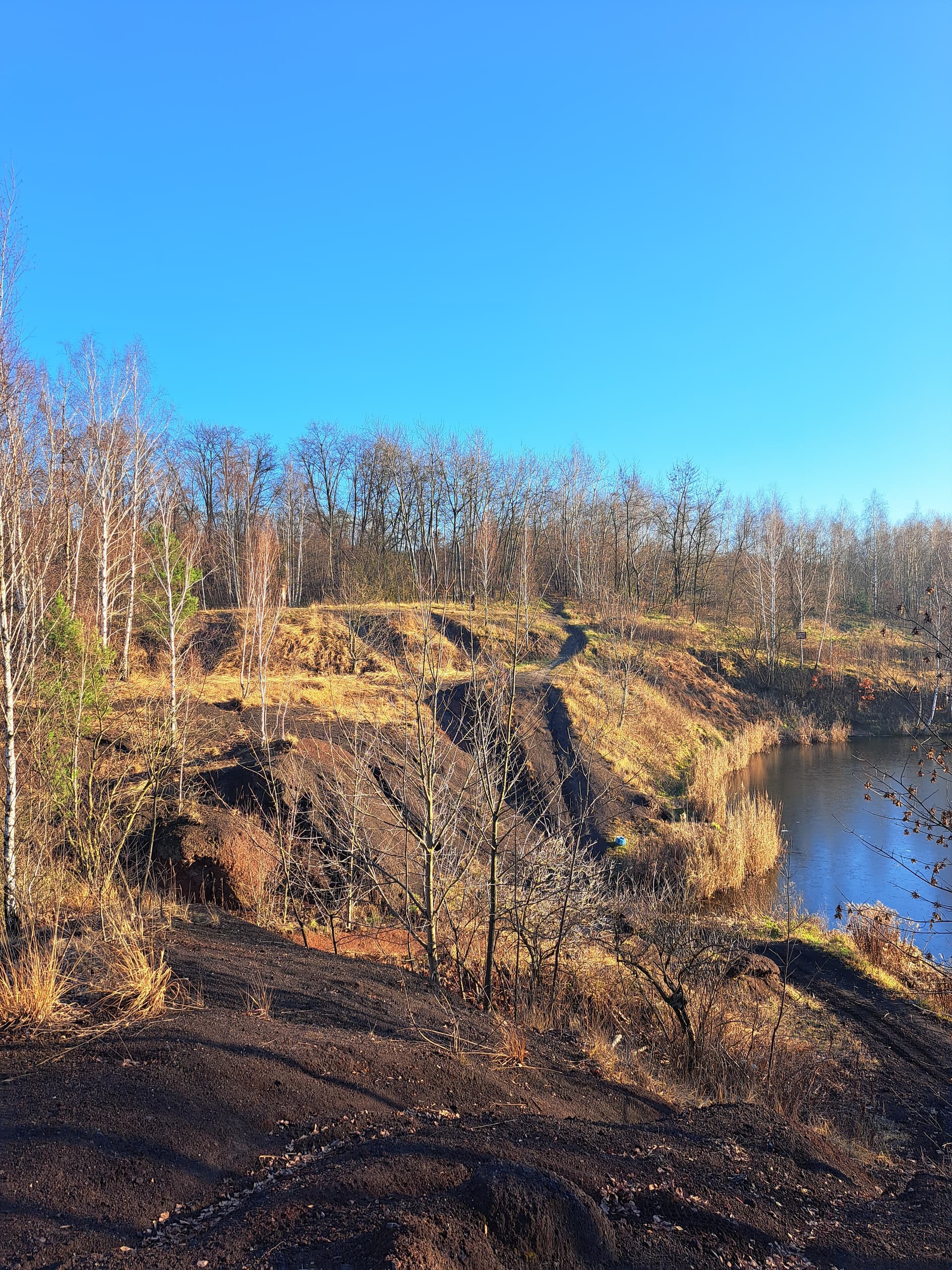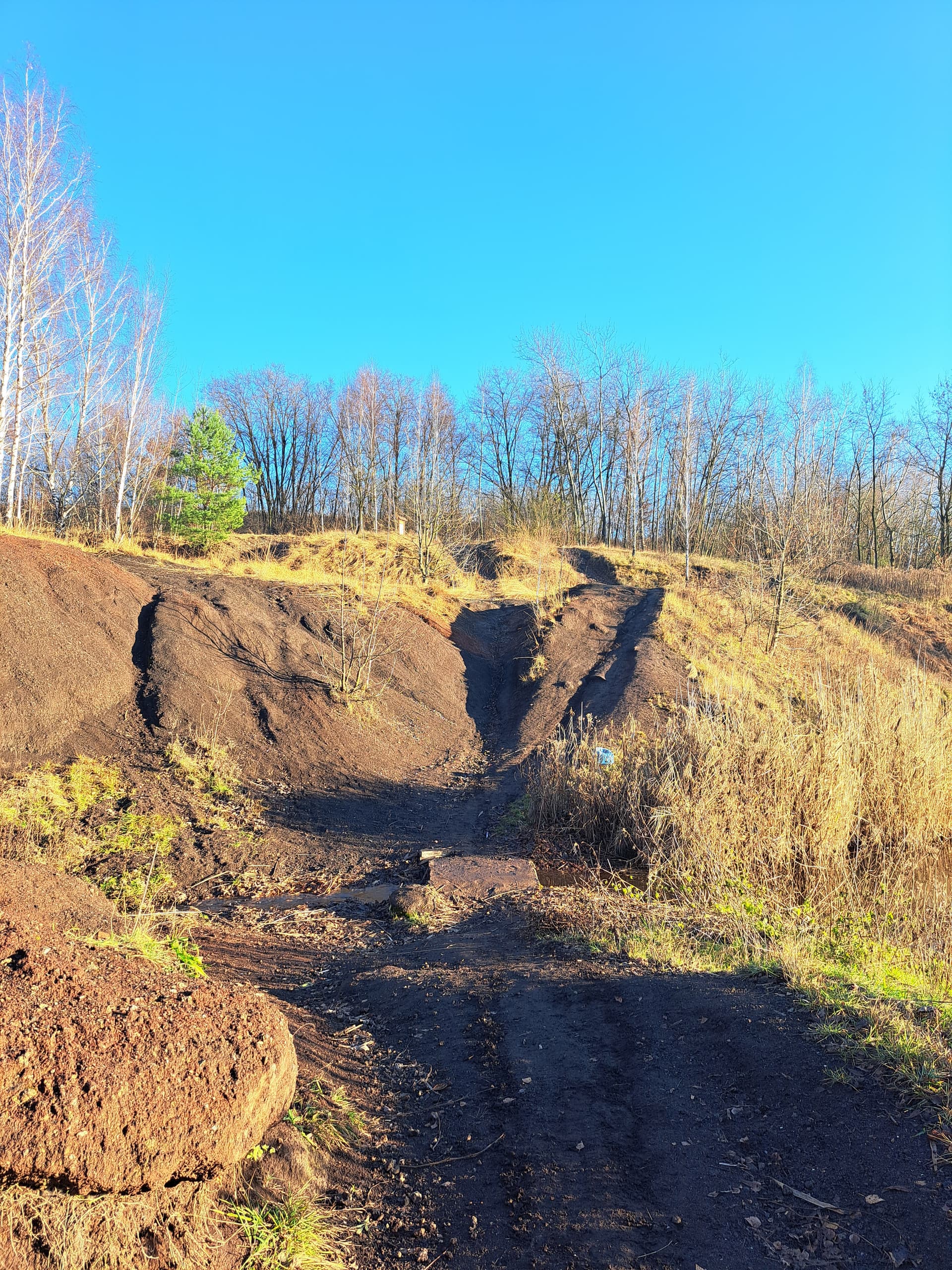 Aby przejechać dookoła hałdy, u jej podnóża musimy przejechać przez nasyp, blokadę.